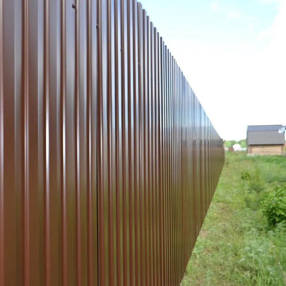 Сторона B отличается матовой текстурой, которая снижает блики и повышает визуальную привлекательность. Материал устойчив к ветровым нагрузкам до 100 км/ч, что актуально для открытых территорий. Особенностью является возможность индивидуального заказа длины листов, минимизируя отходы. Покрытие не трескается при изгибе, сохраняя целостность даже в сложных конструкциях. Кроме того, профиль обладает хорошей звукоизоляцией, поглощая шум дождя или ветра. В цвете шоколад он идеально сочетается с деревянными элементами, создавая единый стиль в экстерьере.